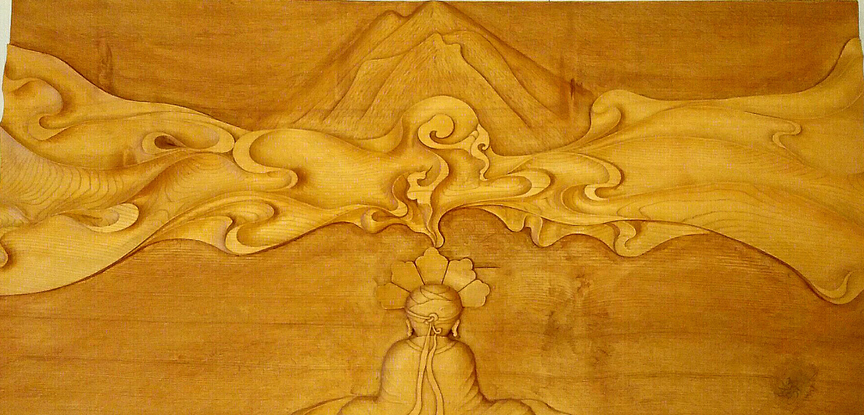 據(jù)古老的東巴經(jīng)《崇搬圖》(創(chuàng)世紀)記載,在宇宙混沌萬物還沒有產(chǎn)生的時候,上方傳來一個美妙的聲音,下方冒出一個白氣,聲音和氣結(jié)合產(chǎn)生了天和地。
